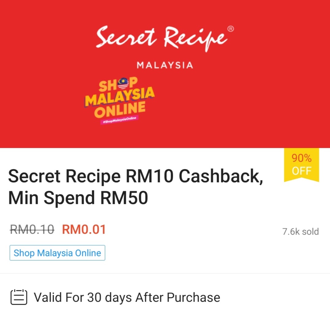▼ ⑪ Secret Recipe – 消费满RM50 可享有RM10 现金回扣;购买【点击这里】