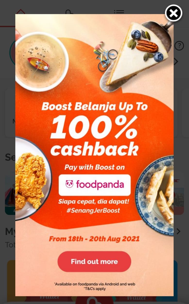 促销活动:Foodpanda 与Boost 联合推出100%回扣优惠