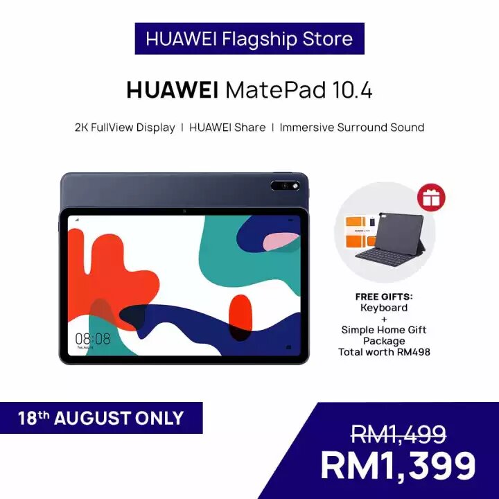 ▼ HUAWEI MatePad 10.4 Tablet (4GB RAM + 128GB ROM) – 只需RM1399(原价RM1499)