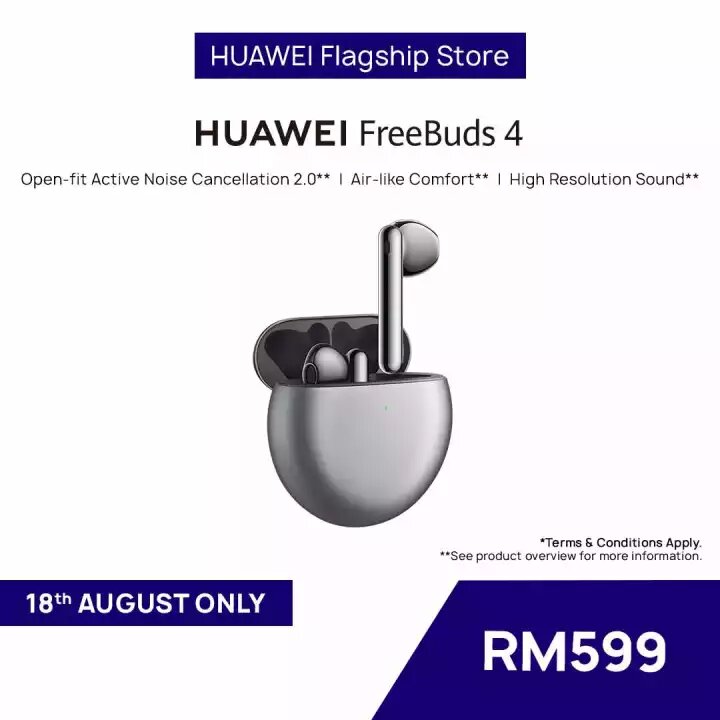 ▼ HUAWEI FreeBuds 4 Wireless Bluetooth Earphone – 只需RM599