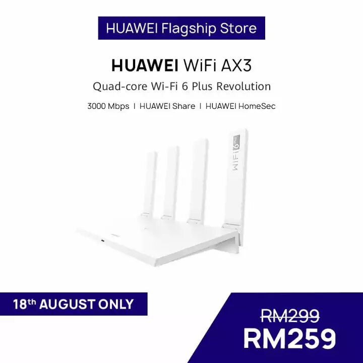 ▼ HUAWEI WiFi AX3 Quad-Core Router | 3,000 Mbps – 只需RM259(原价RM299)