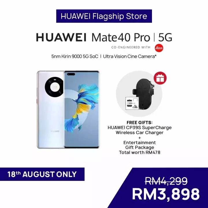 ▼ HUAWEI Mate 40 Pro 5G Smartphone (8GB RAM + 256GB ROM) – RM3898(原价RM4299)