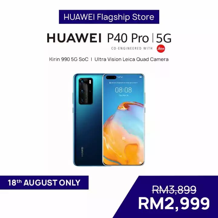 ▼ HUAWEI P40 Pro 5G Smartphone (8GB RAM + 256GB ROM) – 只需RM2999(原价RM3899)