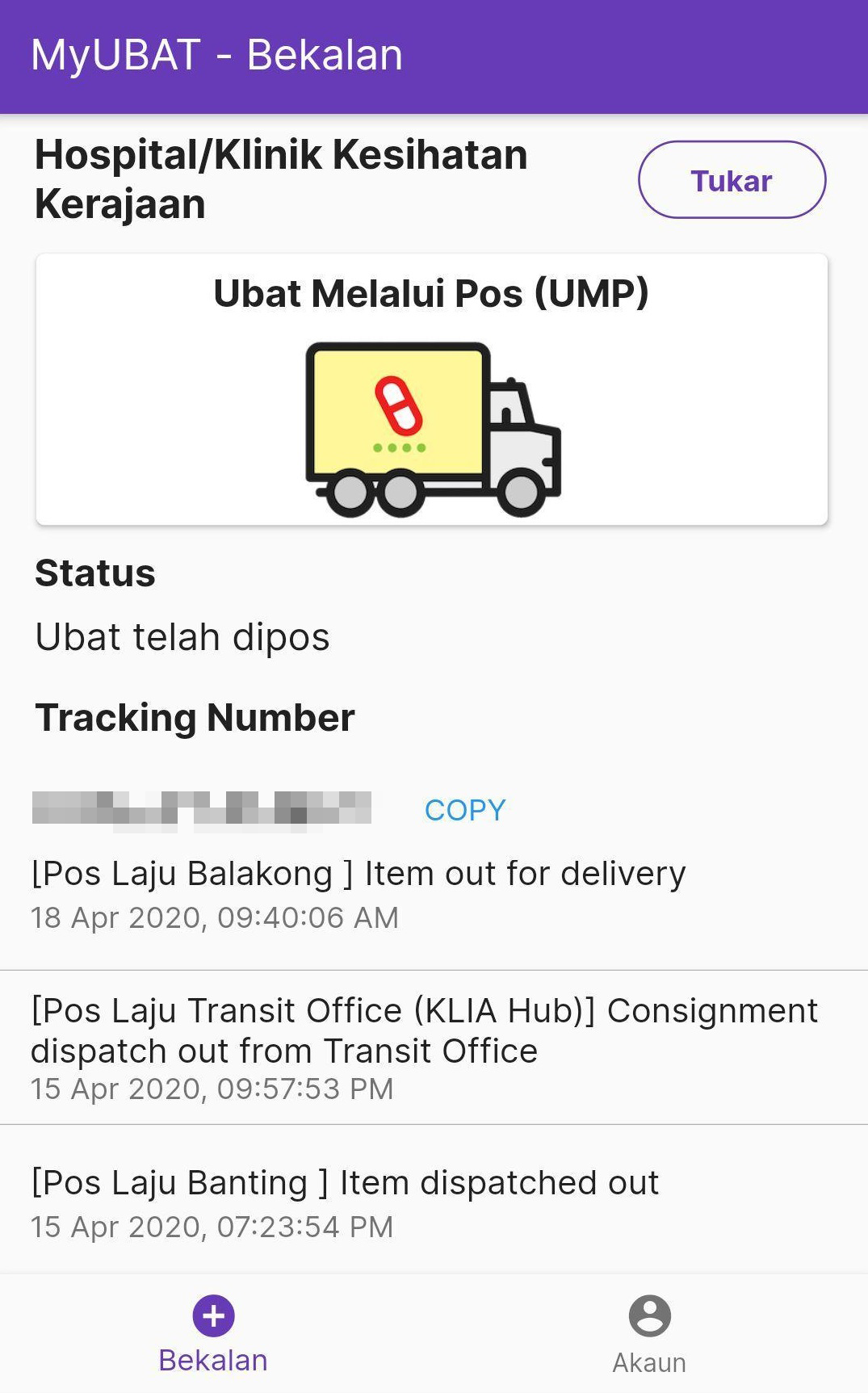 - Ubat Melalui Pos(UMP)- 邮寄药物