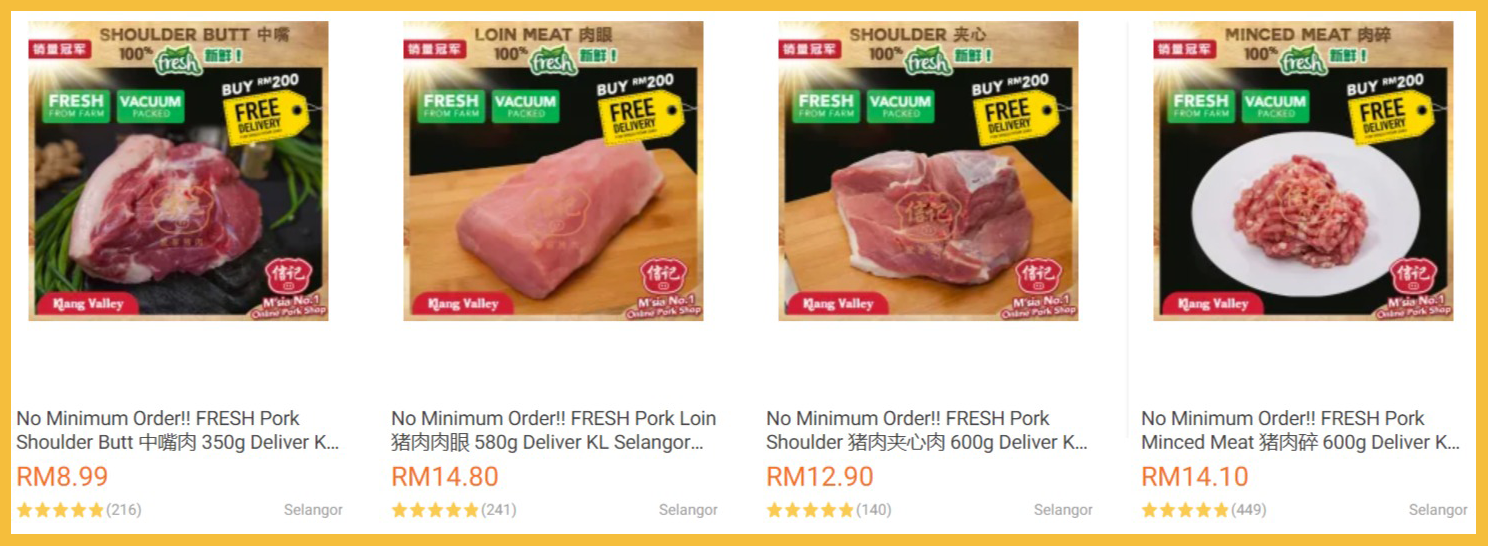现在小编为大家整理出Lazada 11家售卖新鲜猪肉的店铺!各种猪肉的部位都有哦!