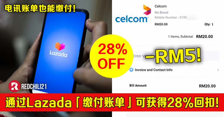 促销活动:Lazada —— 缴付水电费或电讯账单可获得28%回扣