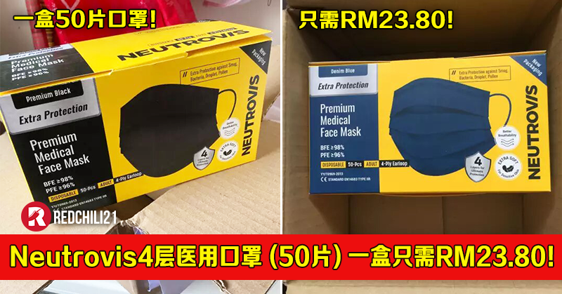 此外,你可以使用这RM5 折扣券,购买Neutrovis 4层医用口罩一盒只需RM23.80!