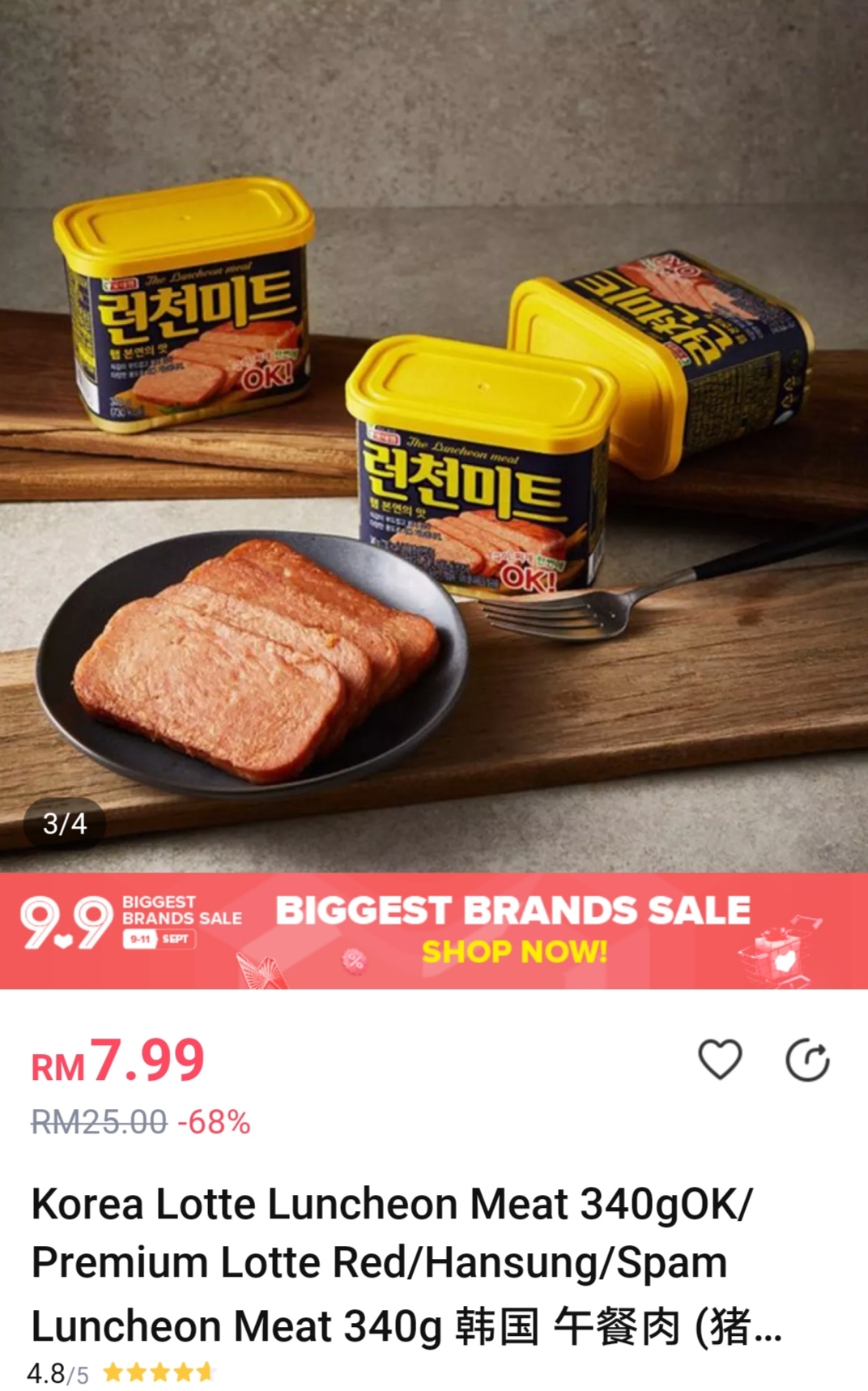▼ i)Korea Lotte Luncheon Meat 340g;购买【点击这里】