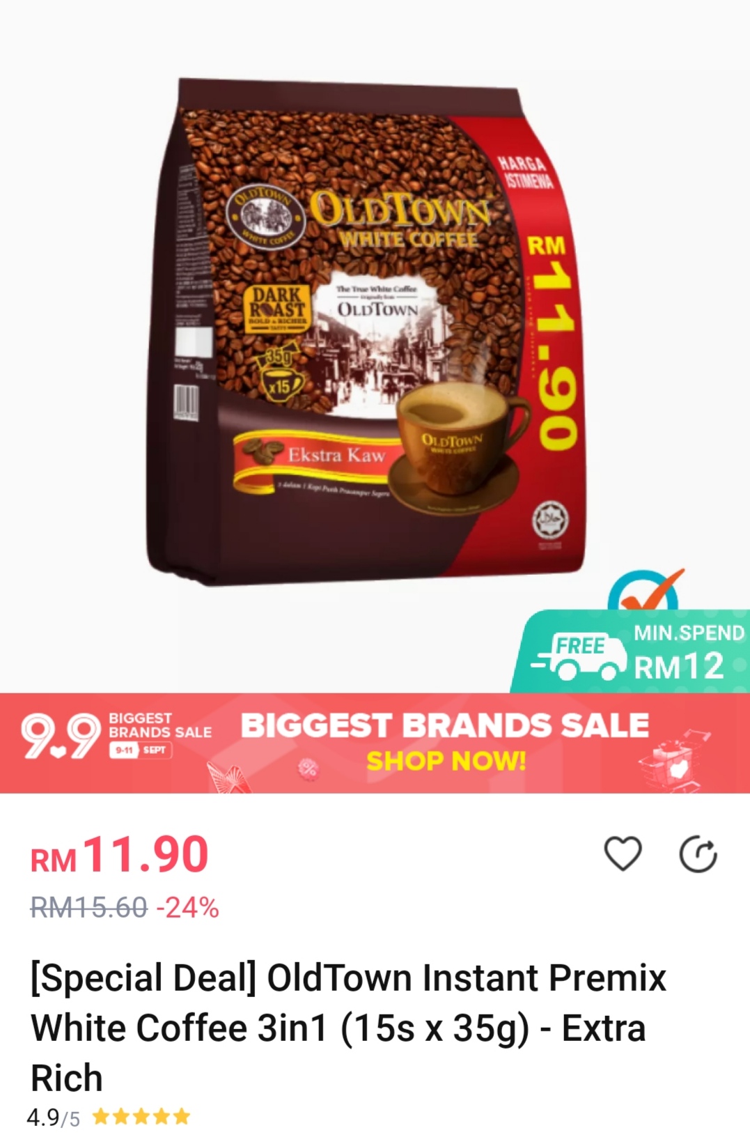 ▼ iii)OldTown Instant Premix White Coffee 3in1 Extra Rich (15s x 35g);购买【点击这里】