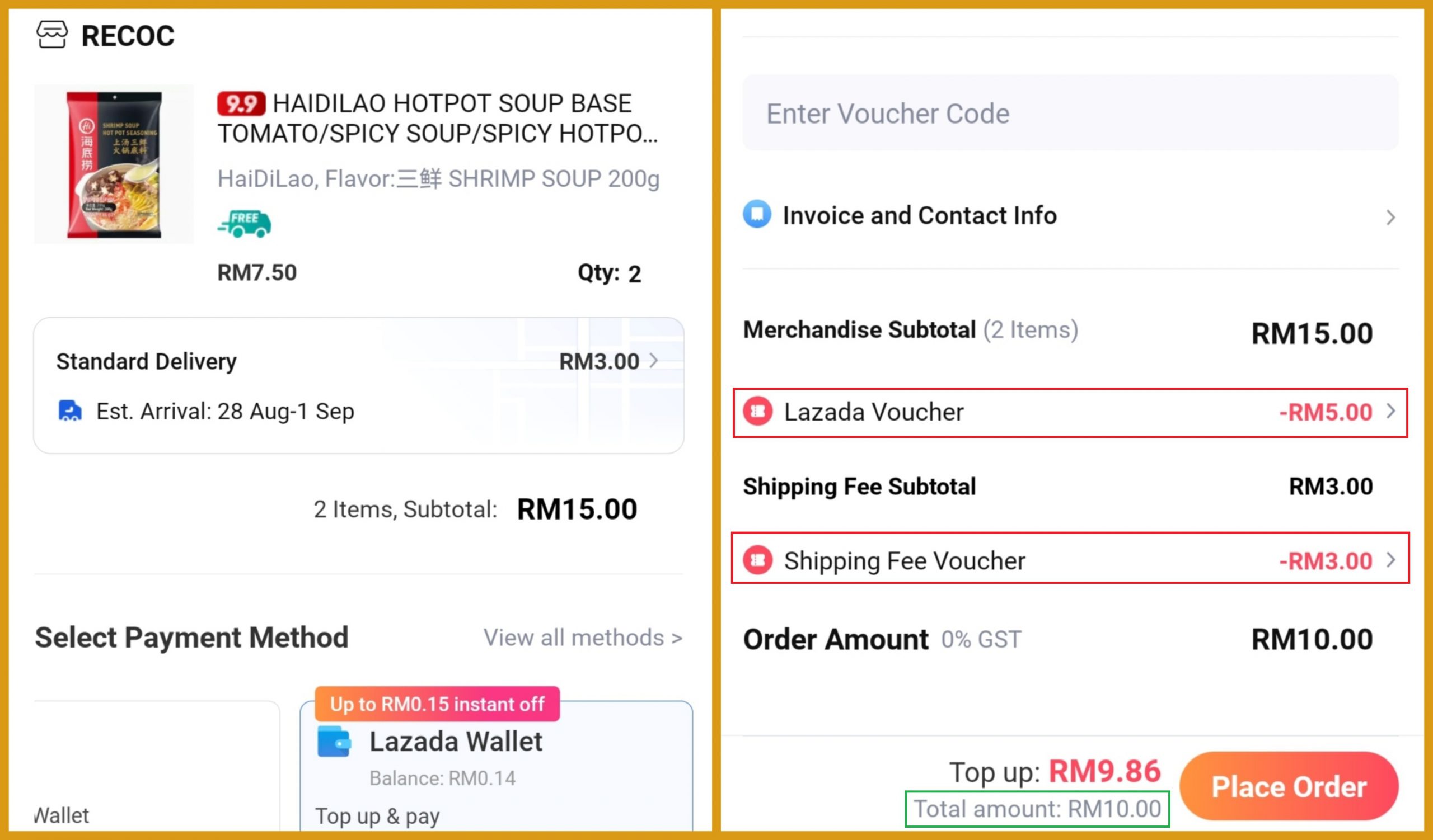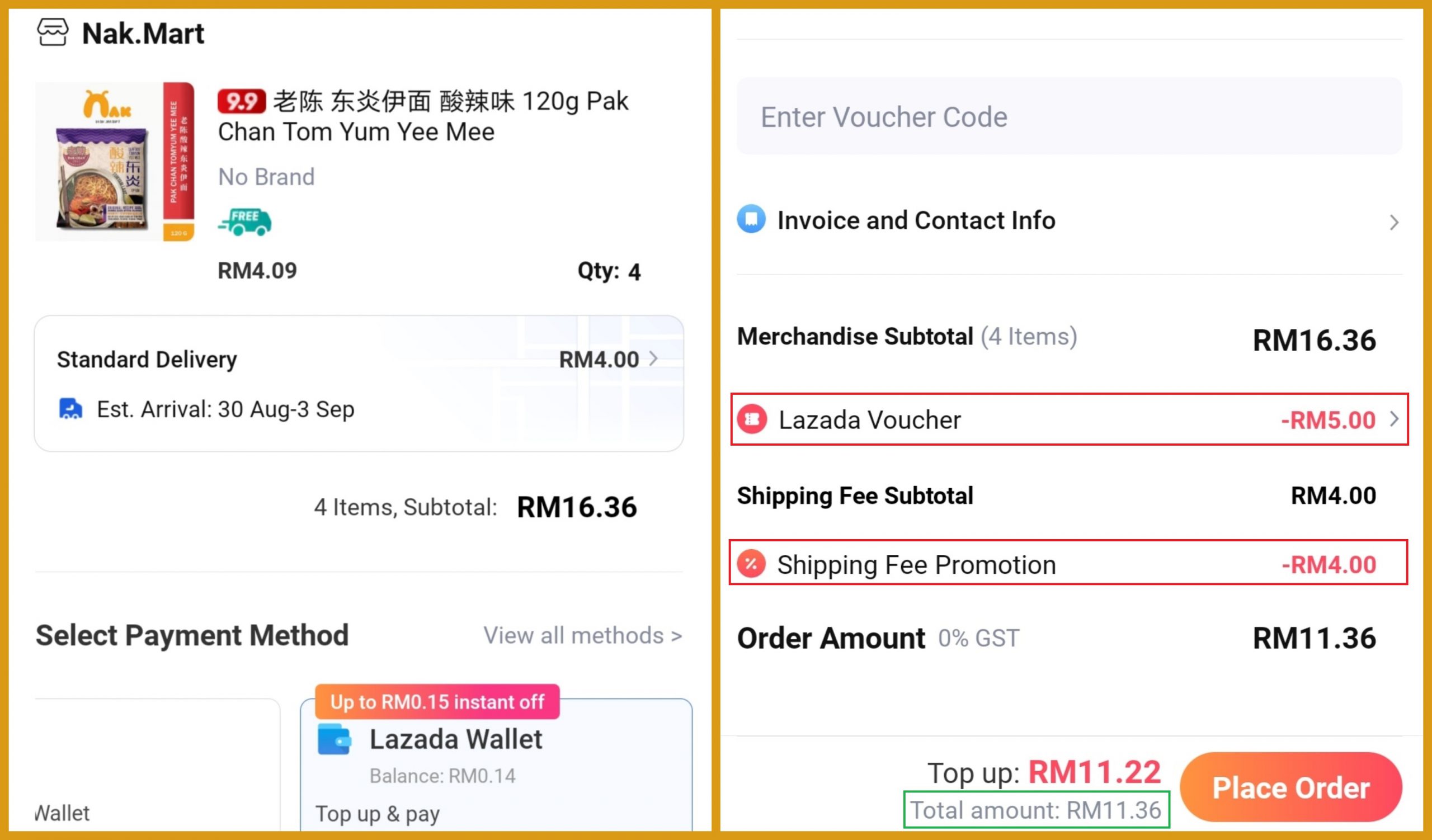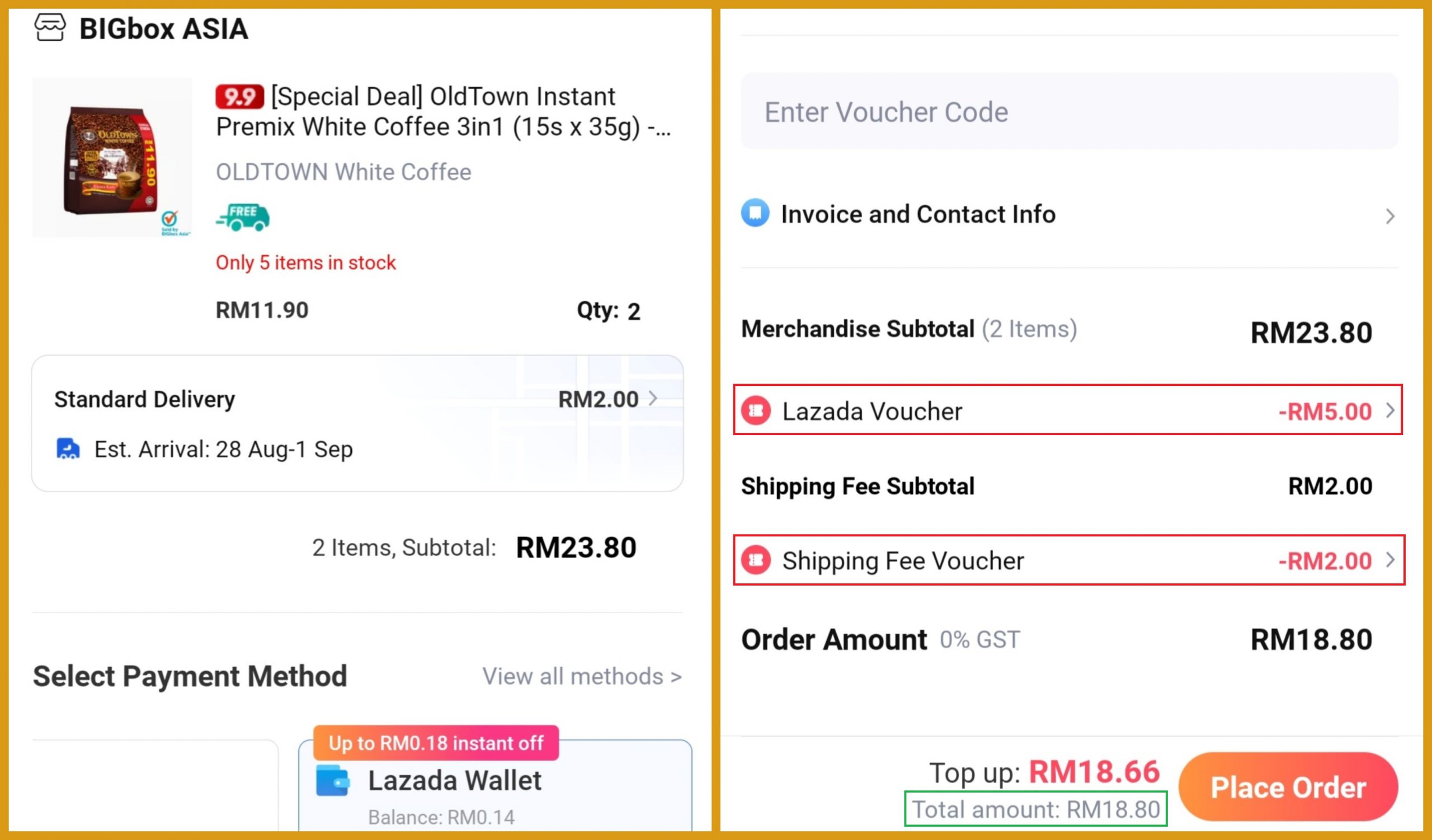 ① 首先领取RM5 折扣券及免邮券【点击这里】(折扣券需通过Lazada App 查看及领取)
