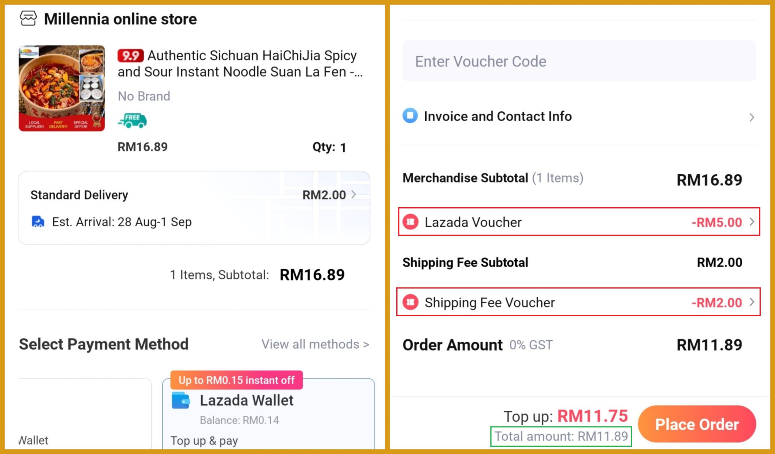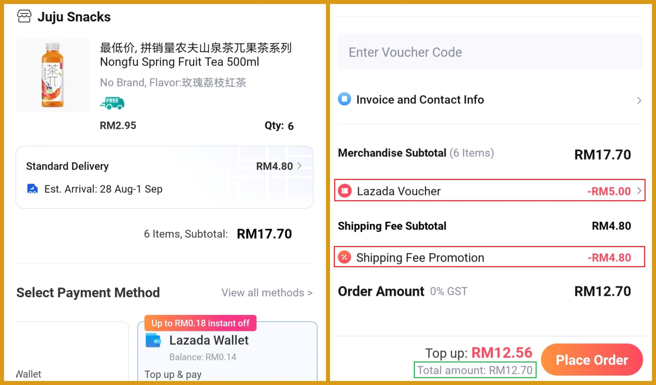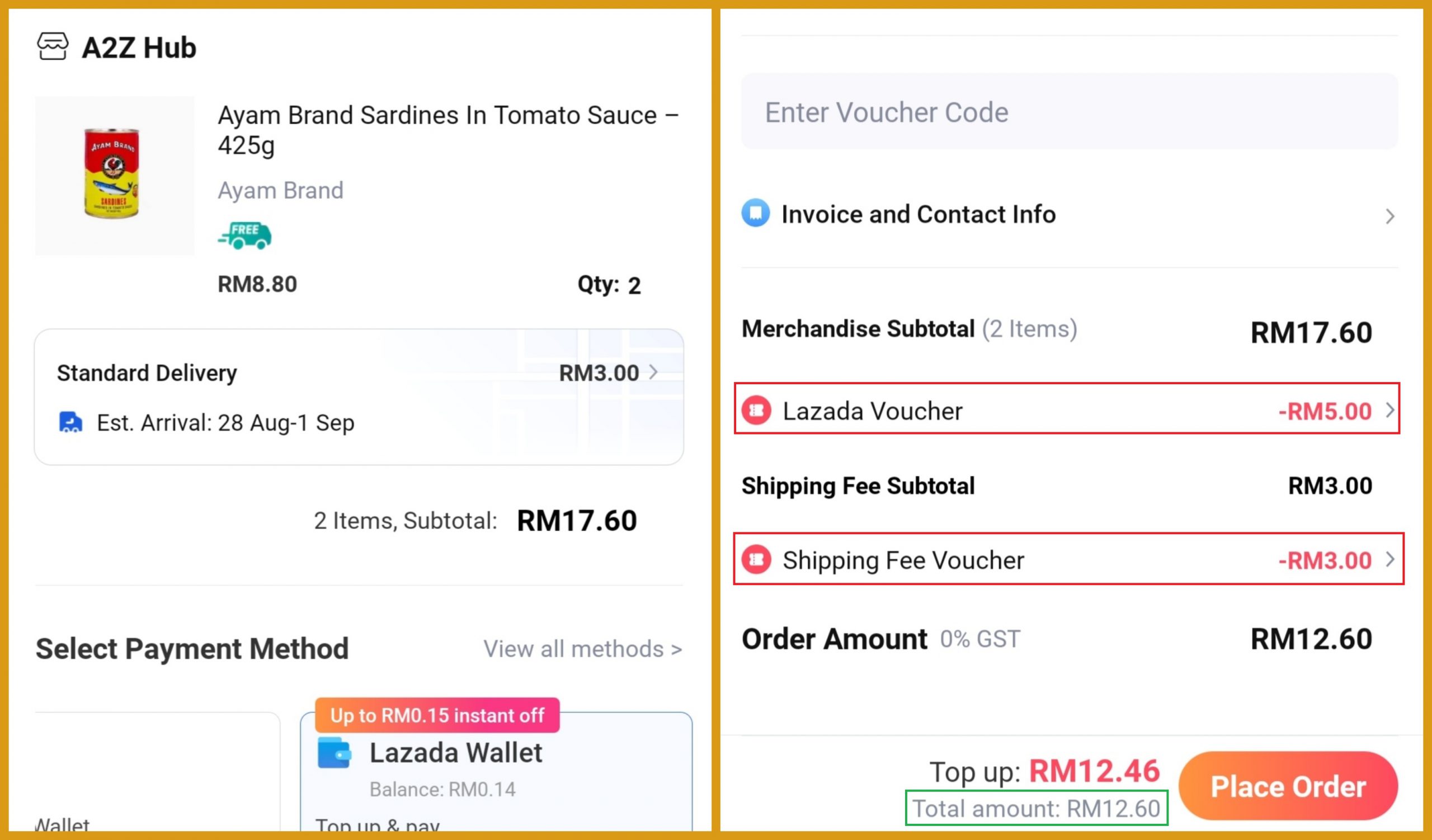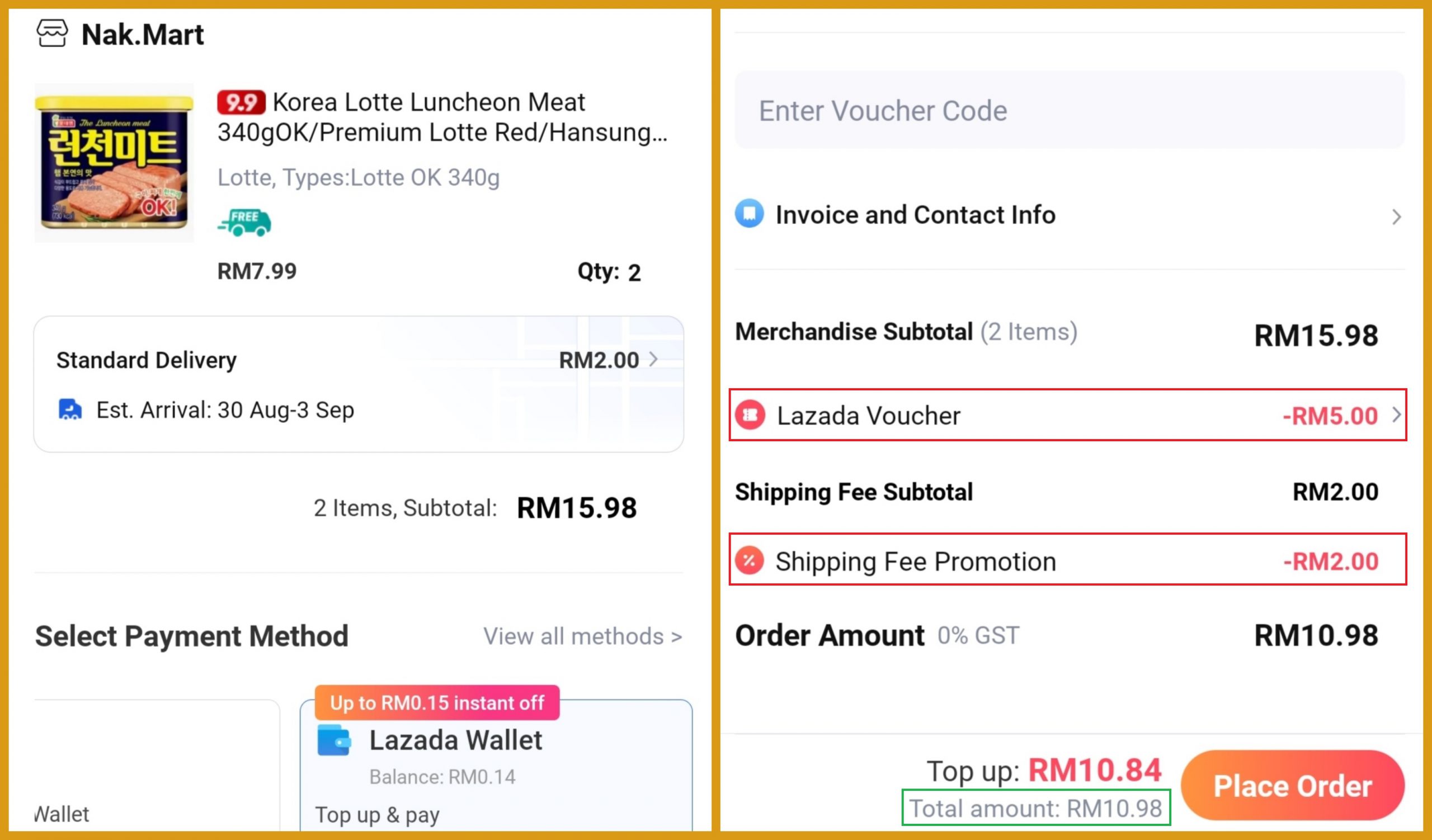 ① 首先领取RM5 折扣券及免邮券【点击这里】(折扣券需通过Lazada App 查看及领取)