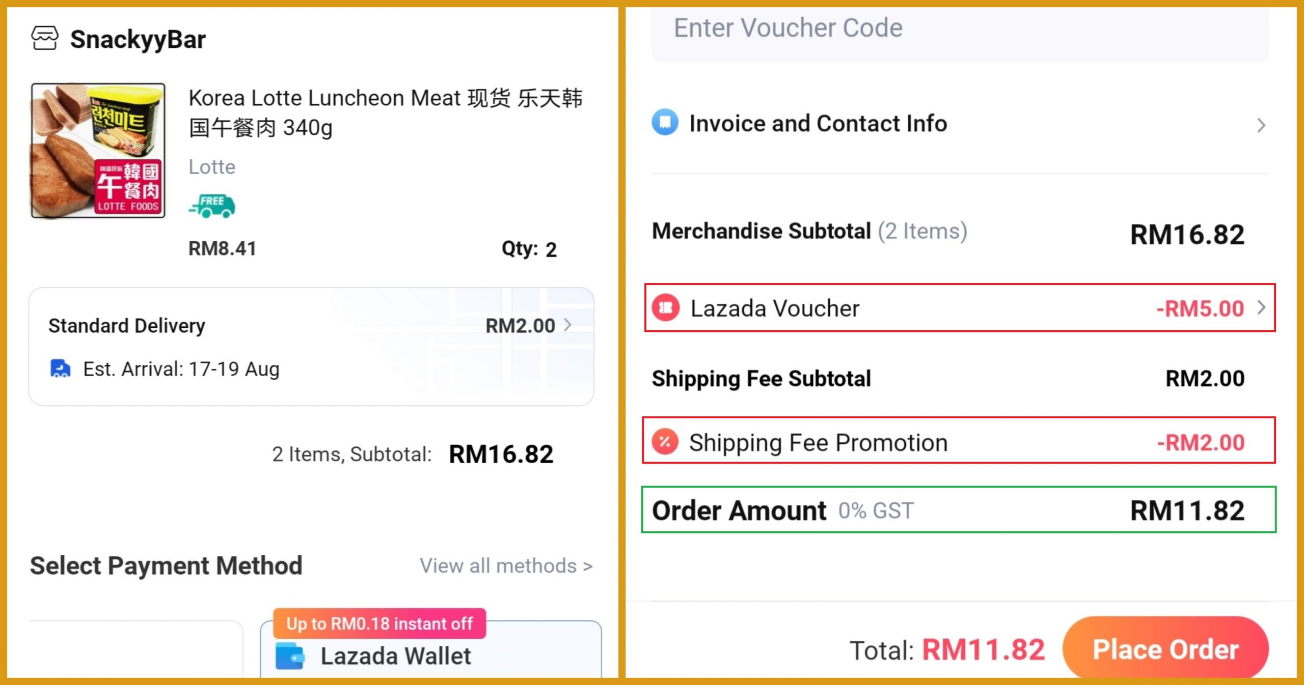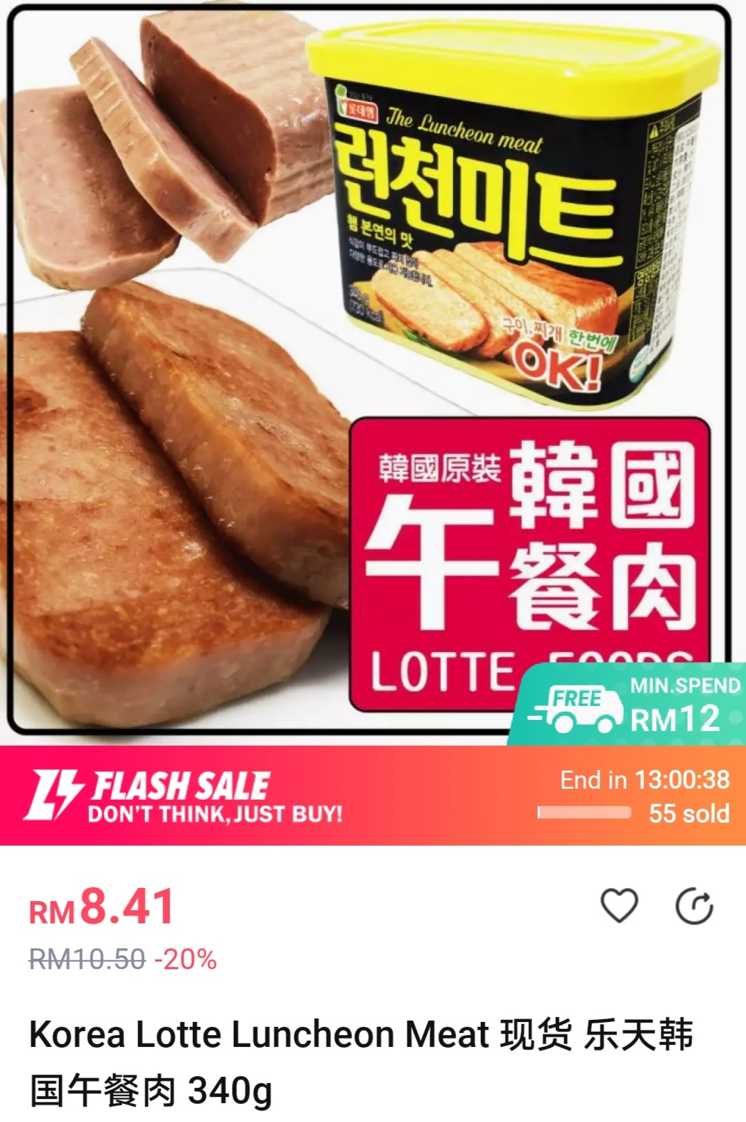 ③ 2罐Lotte 午餐肉(原价RM16.82)折扣RM5 +免邮券,只需RM11.82!平均一罐只需RM5.91!