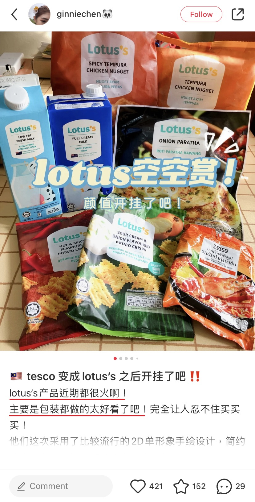 一名大马博主近日在小红书PO文分享 Lotus’s 自家品牌的8个好物,除了包装精致好看、价格便宜,最重要的是:真的很香很好吃!