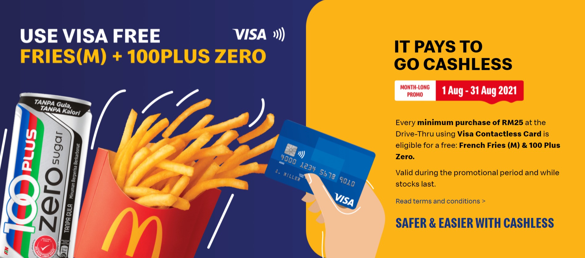 促销活动:McDonald’s Drive Thru 购买RM25 或以上餐点/套餐,可免费获得薯条和100Plus Zero