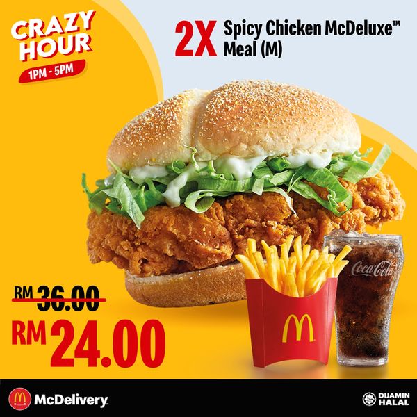 ⑥ 2份Spicy Chicken McDeluxe Meal (M) —— 只需RM24(1份套餐RM12)