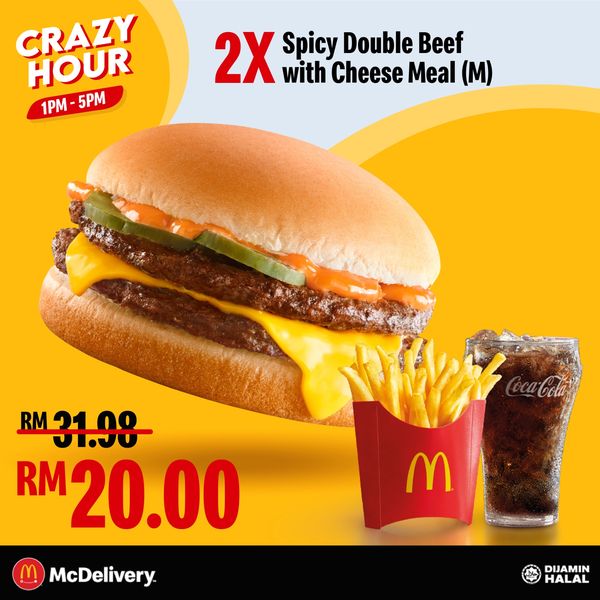 ⑤ 2份Spicy Double Beef With Cheese Meal (M) —— 只需 RM20(1份套餐RM10)