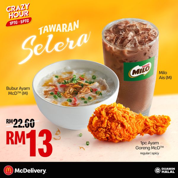 ⑫ 1份Bubur Ayam McD (M) + 1pc Ayam Goreng Spicy + Iced Milo (M) —— 只需RM13