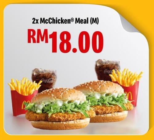 ① 2份McChicken Meal (M) —— 只需 RM18(1份套餐RM9)