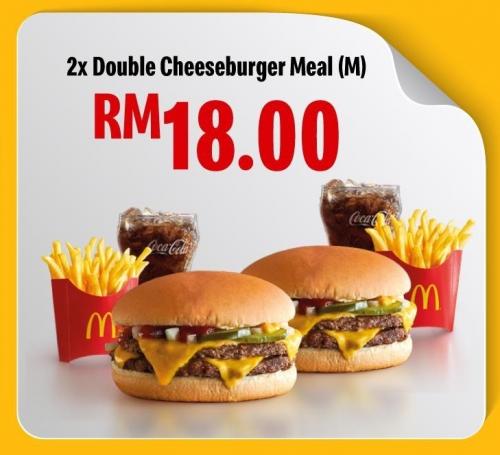 ② 2份Double Cheeseburger Meal (M) —— 只需 RM18(1份套餐RM9)