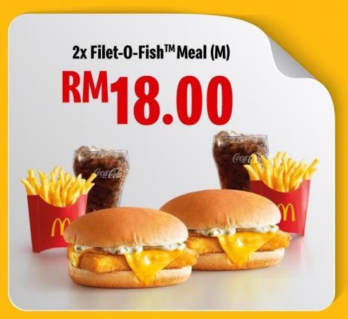 ③ 2份Filet-O-Fish Crazy Hour Meal (M) —— 只需RM18(1份套餐RM9)