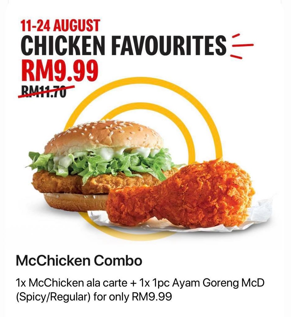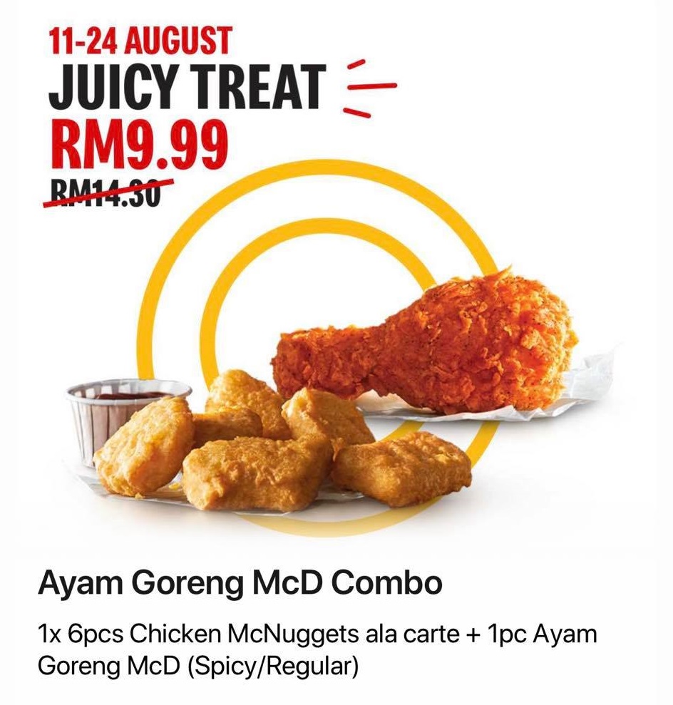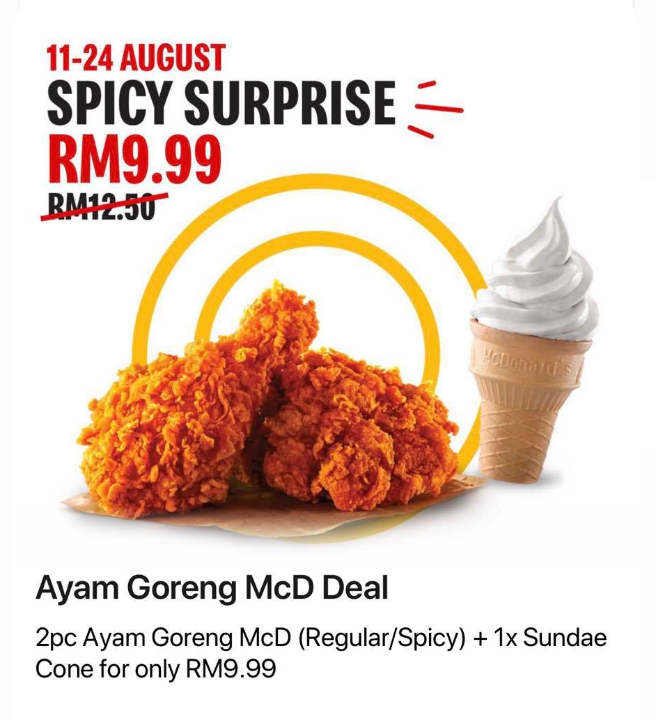 ※ 套餐包含:1粒McChicken 汉堡 + 1块Ayam Goreng McD(Spicy/Regular)