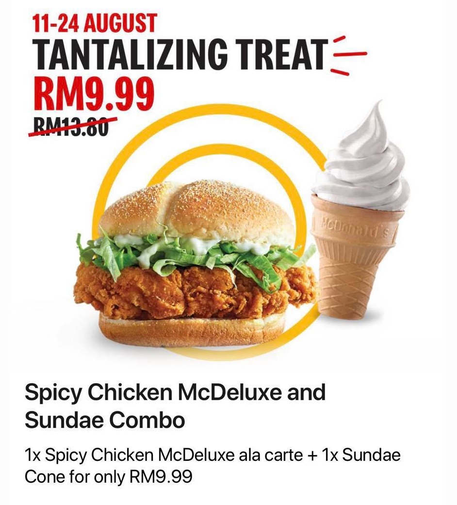 ※ 套餐包含:1粒Spicy McDeluxe 汉堡 + 1支Sundae Cone