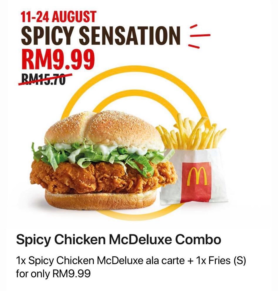 ※ 套餐包含:1粒Spicy McDeluxe 汉堡 + 1份薯条(S)