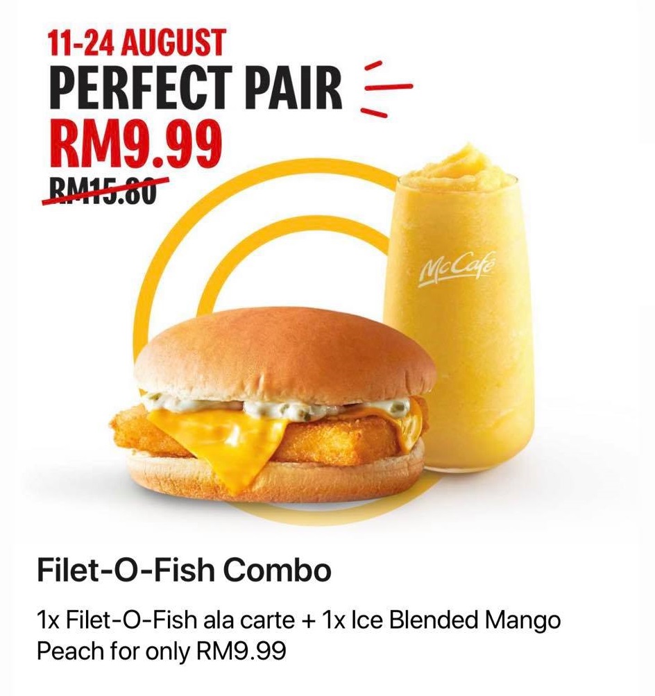 ※ 套餐包含:1粒Filet-O-Fish 汉堡 + 1杯Iced Blended Mango Peach