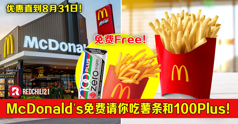 别忘了~McDonald’s 免费请你吃薯条和100Plus 的优惠!优惠直到8月31日!