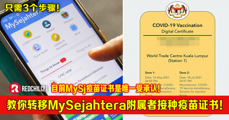 【只需3个步骤】教你转移MySejahtera附属者接种疫苗证书!目前MySj疫苗证书是唯一受承认!