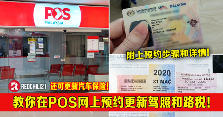 根据大马邮政局(POS Malaysia)在面子书发布文告显示,全马POS 分行将在8月9日起提供驾照和路税更新服务!但民众必须通过线上预约时间!