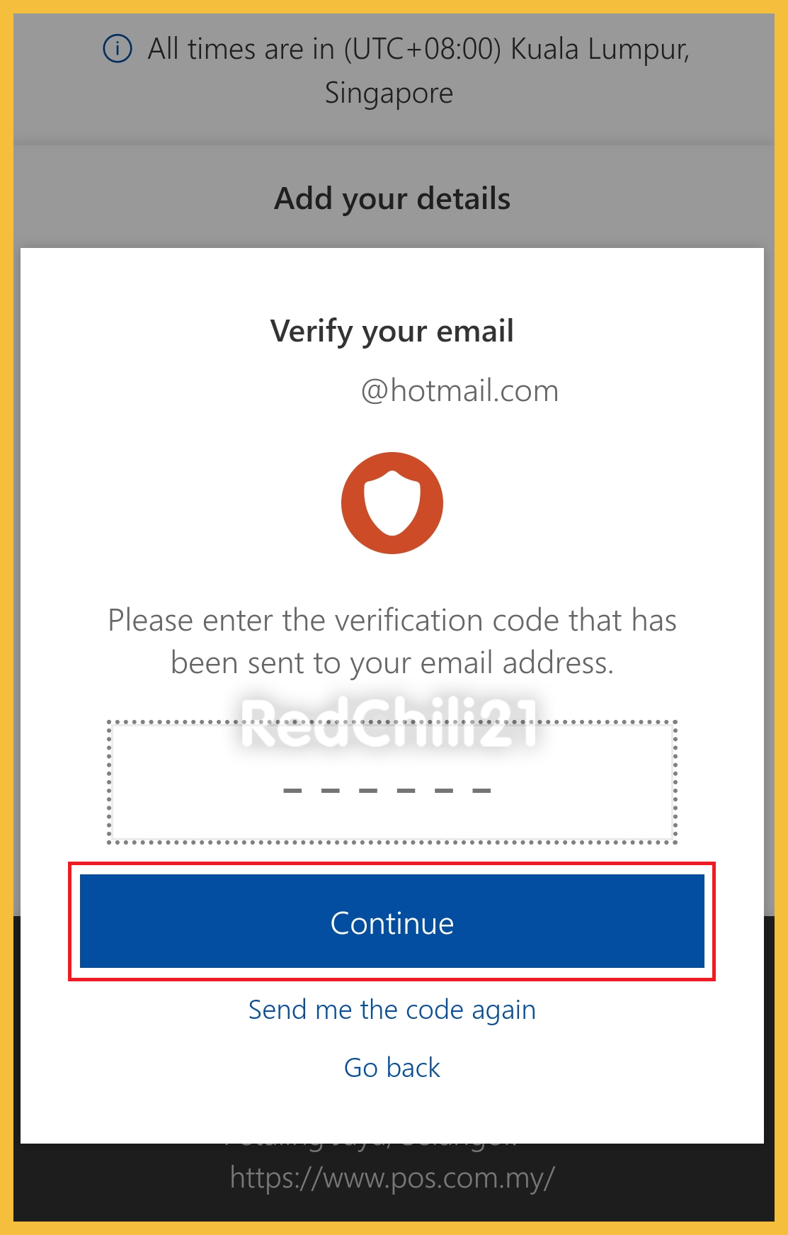 步骤7:输入6个验证码。(通过电邮查看)!点击“Continue”。