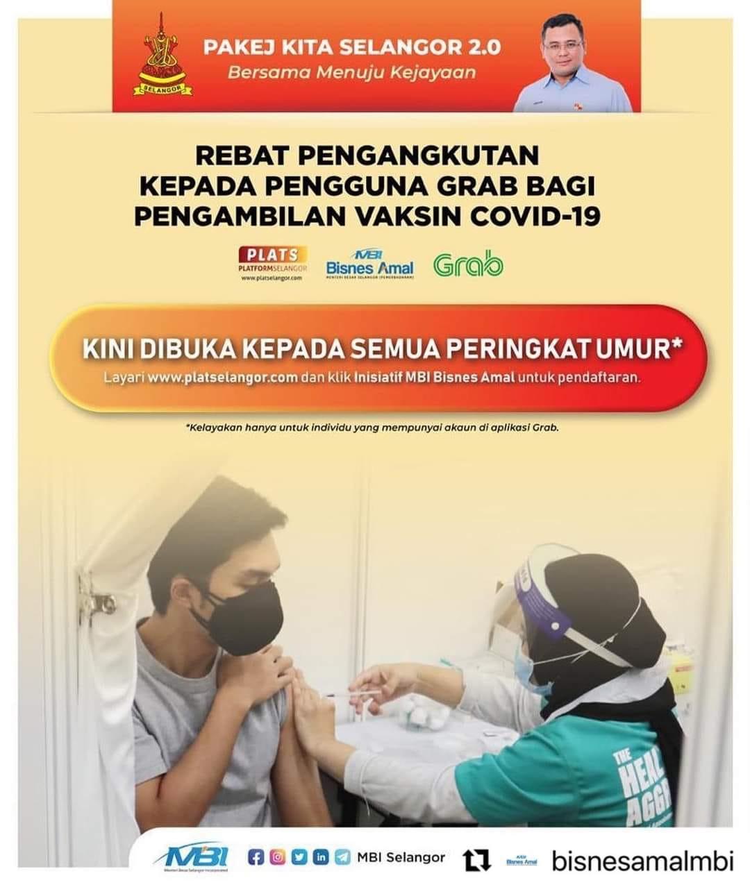 雪兰莪的民众搭乘Grab 前往疫苗接种中心,可享有每趟行程RM10 的车费回扣,往返一共可获得RM20!此项计划开放给所有年龄层的人士申请!