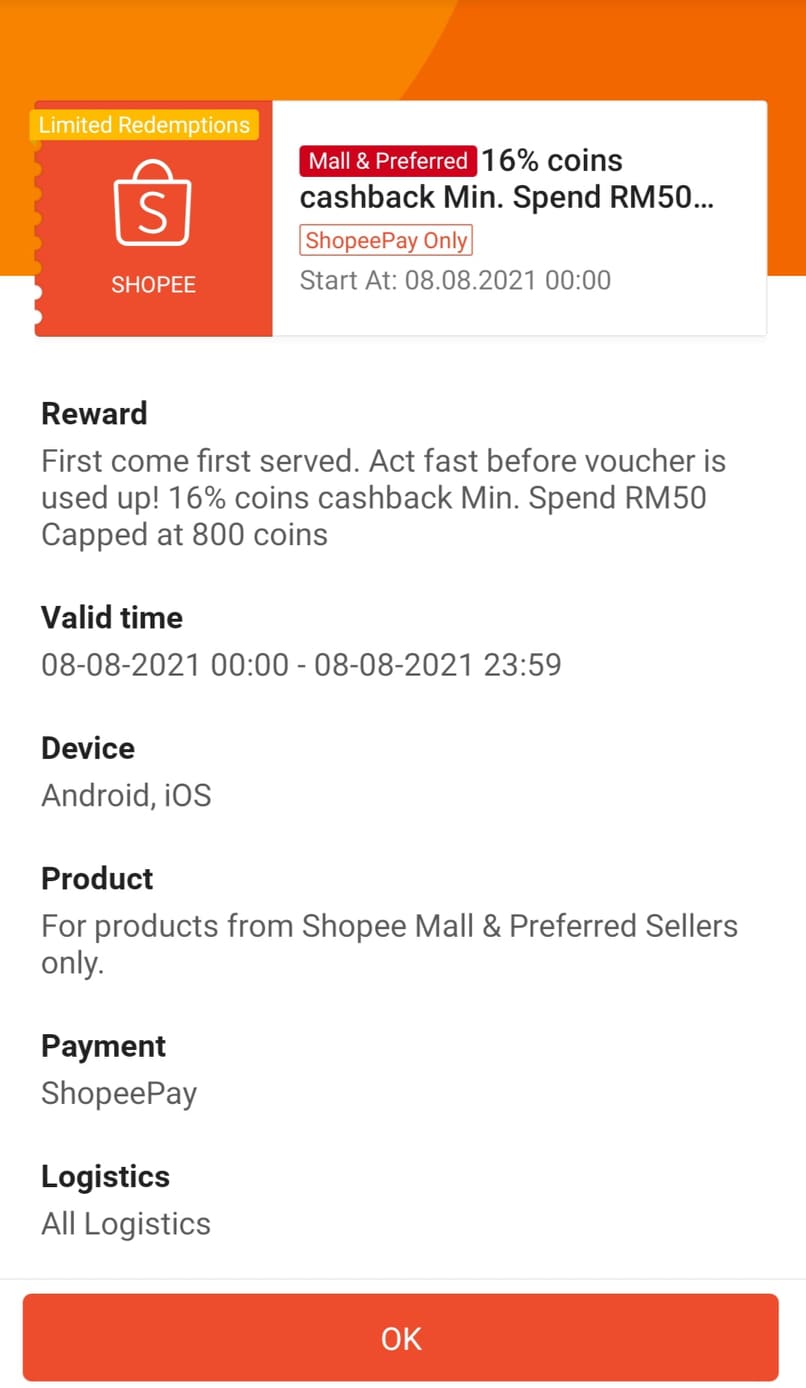 ▼② 消费RM68,可获高达884 Coins(RM8.84)!