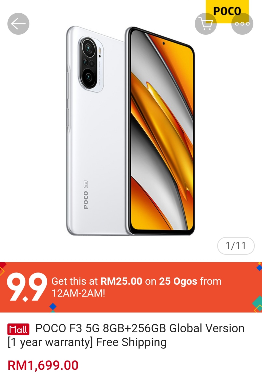 ▪ POCO F3 5G | 8GB+256GB Global Version – RM1699 RM25
