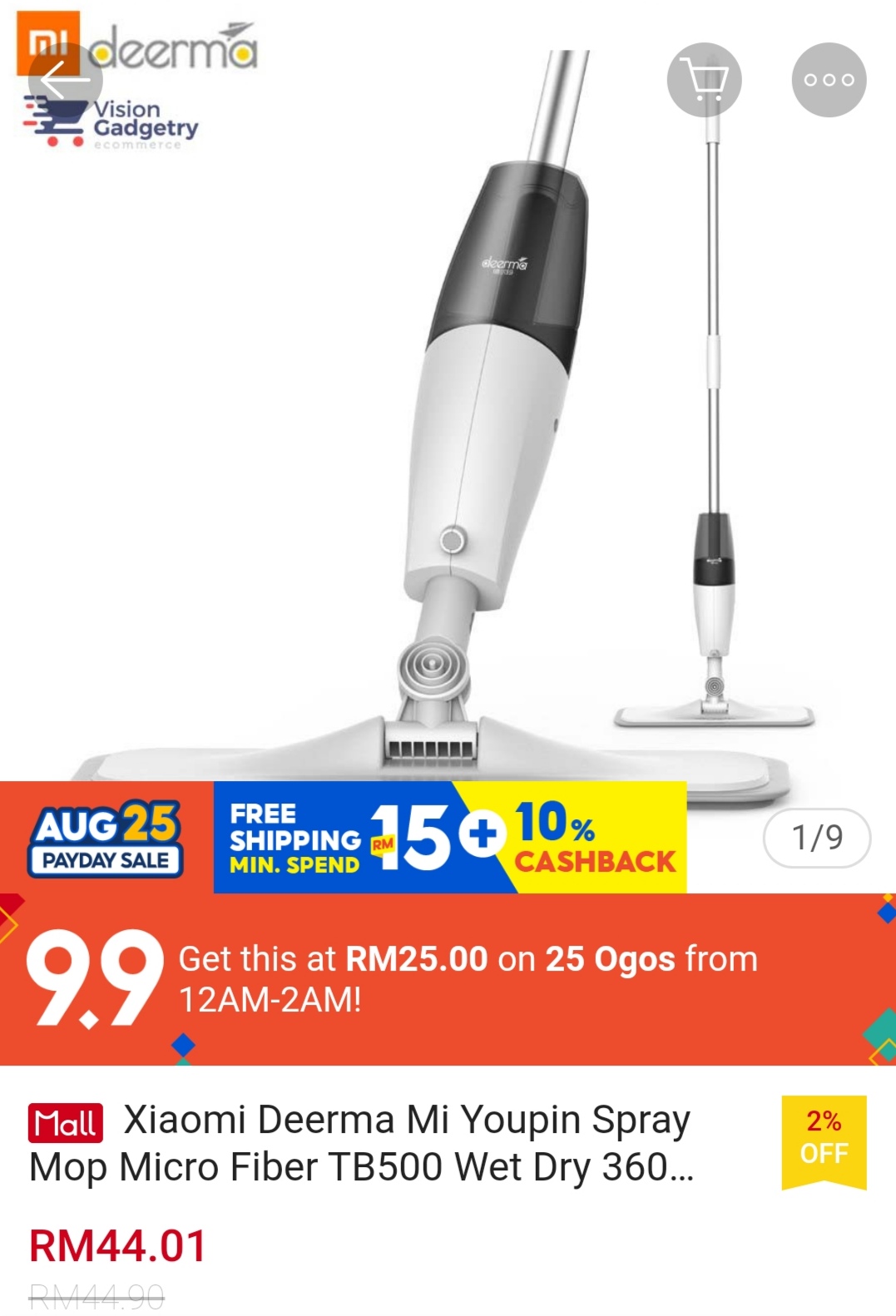 ▪ Xiaomi Deerma Mi Youpin Spray Mop Micro Fiber TB500 – RM44.01 RM25