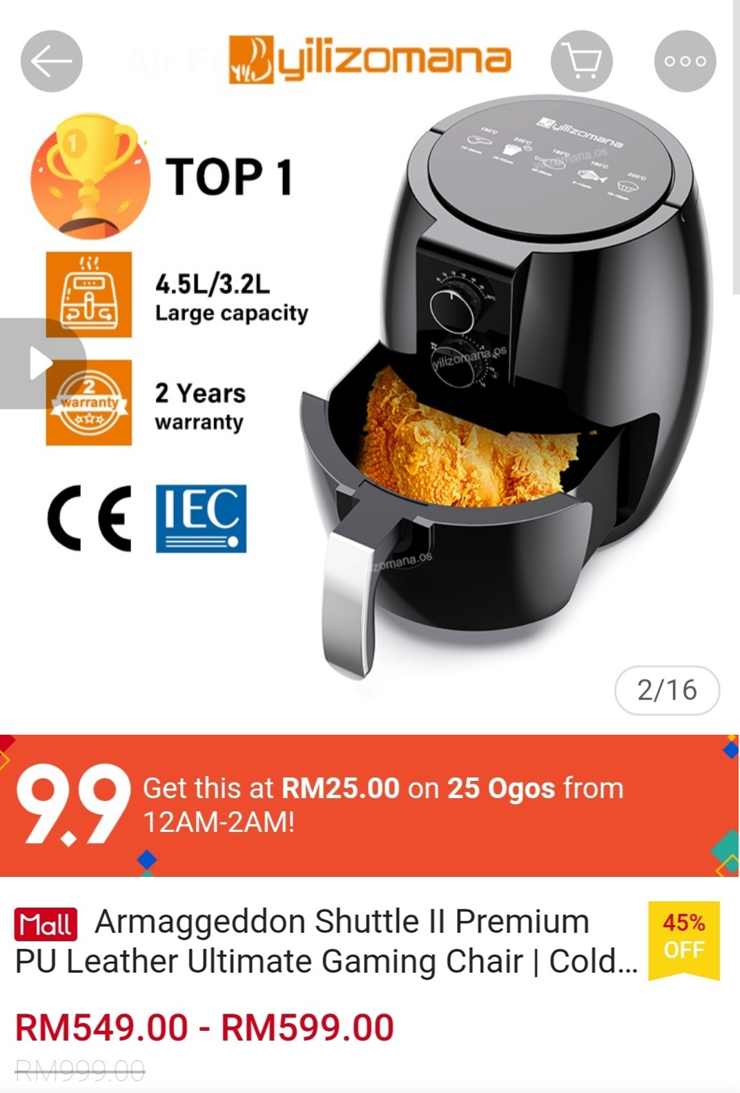 ▪ Air Fryer – Automatic Oil Free Electric Household Fries Machine Non Stick Fry Tools (4.5 L/3.2 L) – RM549 – RM599 RM25