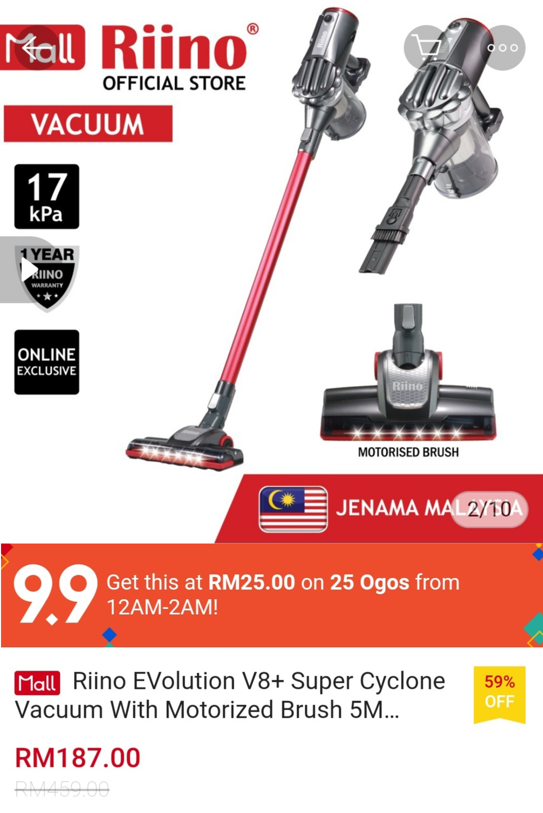 ▪ Riino EVolution V8+ Super Cyclone Vacuum – RM187 RM25