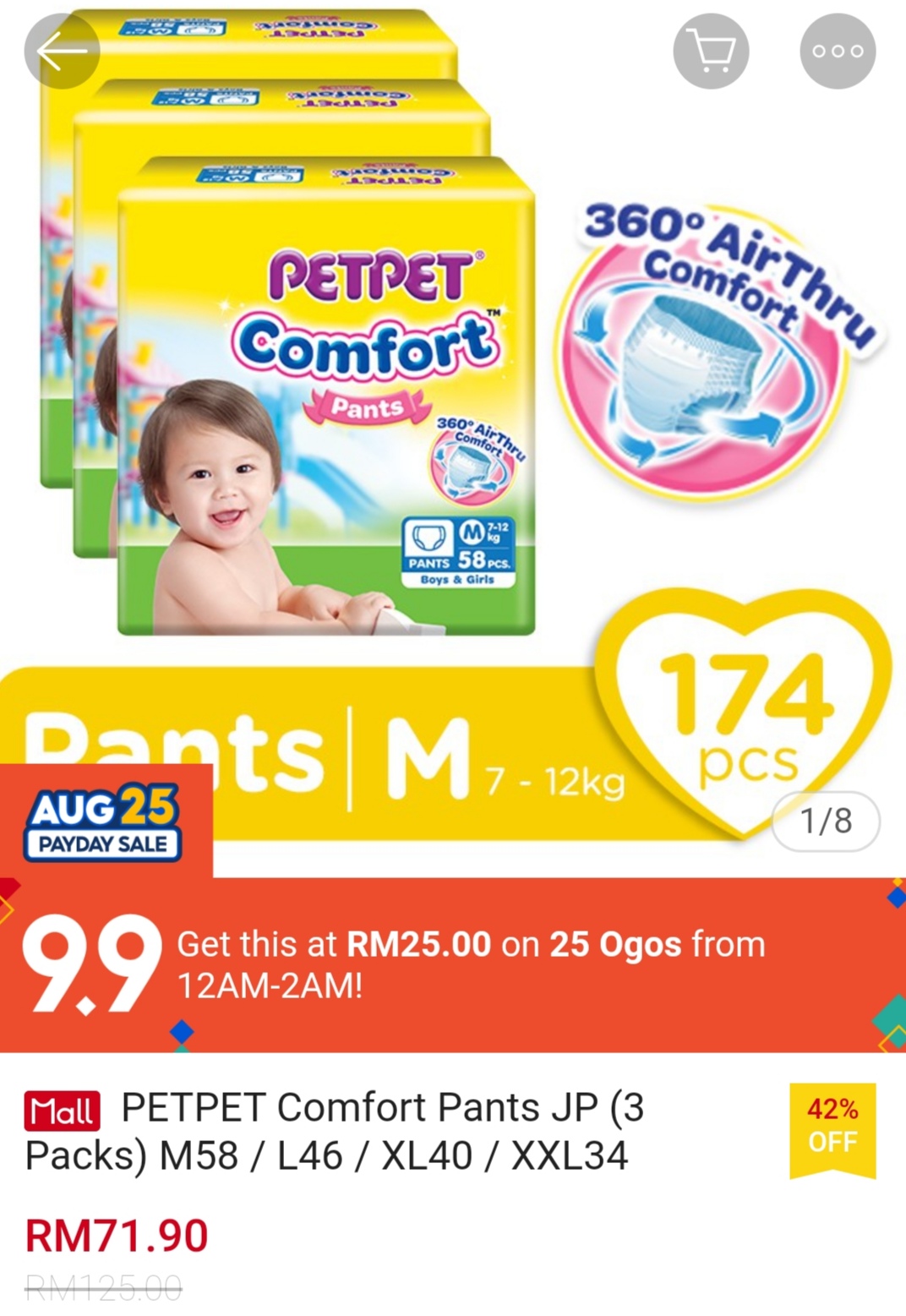 ▪ PETPET Comfort Pants JP (3 Packs) M58 / L46 / XL40 / XXL34 – RM71.90 RM25