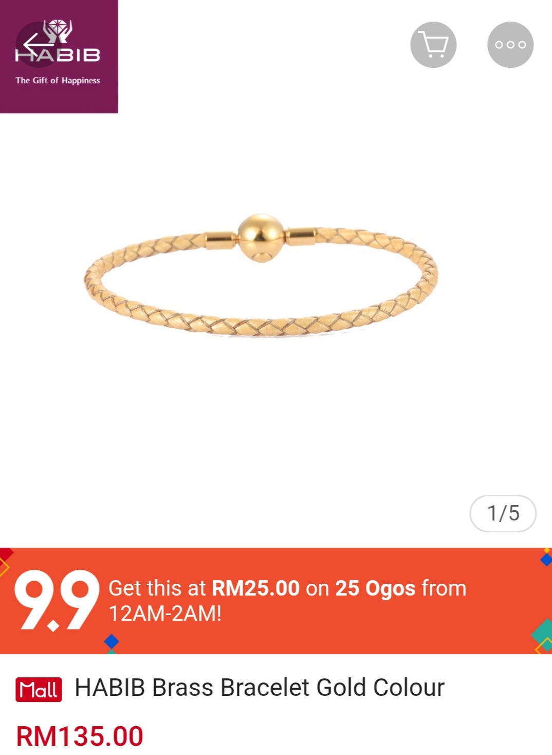 ▪ HABIB Brass Bracelet Gold Colour – RM135 RM25