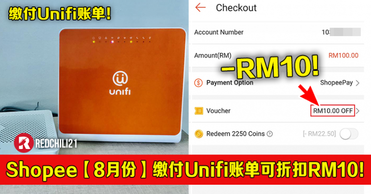 Shopee【8月份】缴付Unifi账单可折扣RM10!优惠直到8月31日!