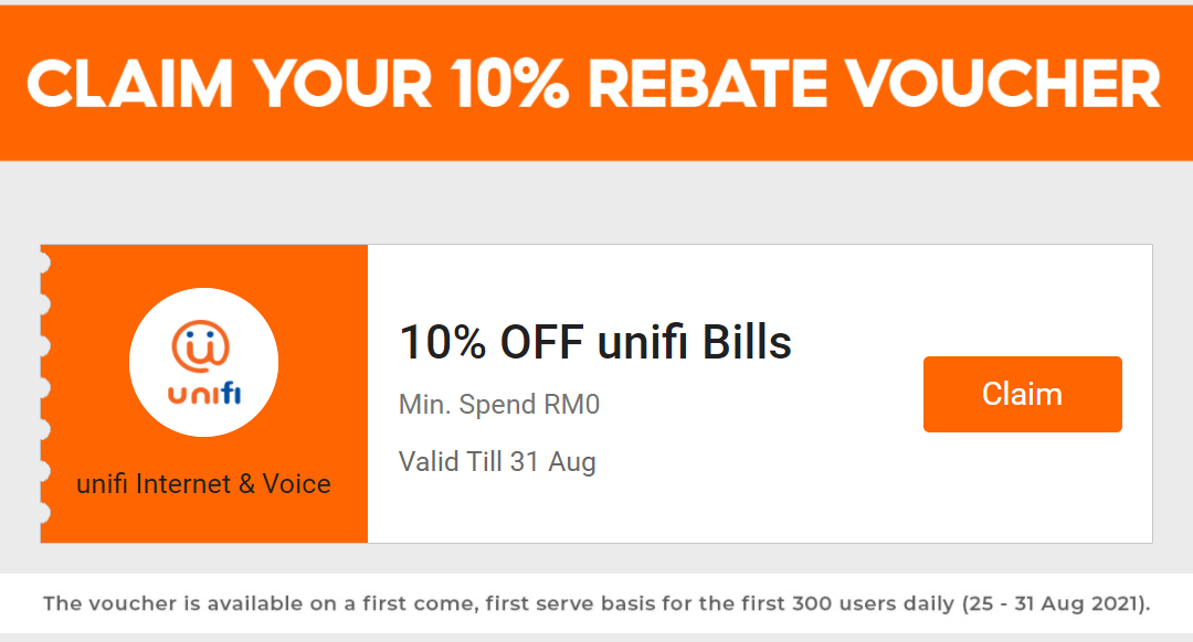 缴付Unifi 账单可获得10%回扣(高达RM10回扣)
