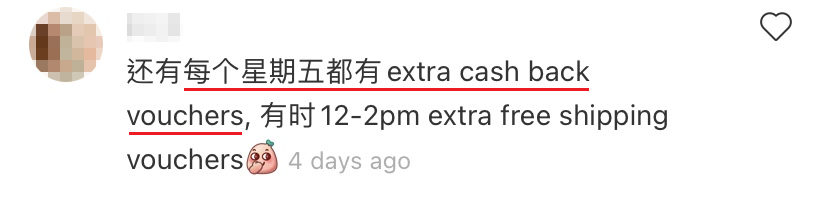 ▼ 另外,网友还透露,每个星期五都有额外的现金回扣礼券。