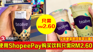 只要你通过Shopee 购买Tealive 饮料礼券,可享有一杯只需RM2.80 优惠价格!