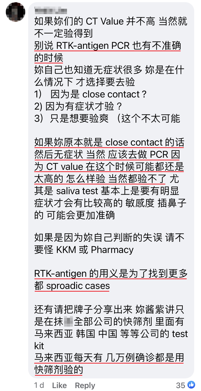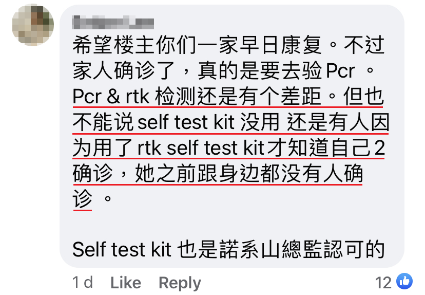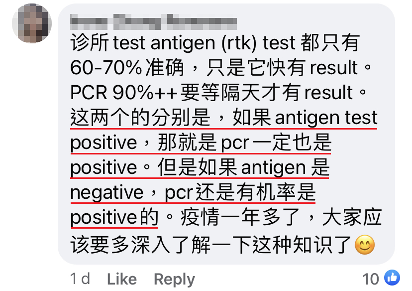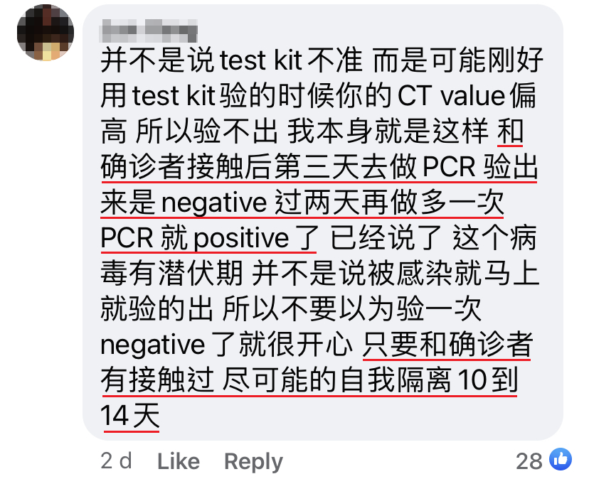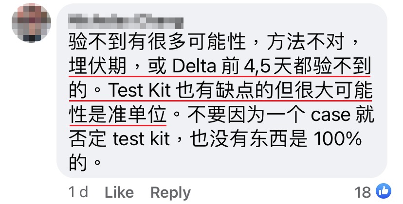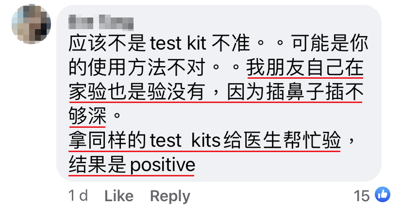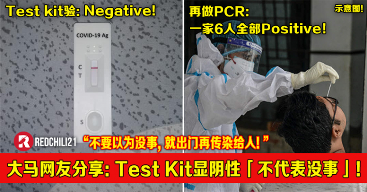不过近日一则帖文就在脸书疯传,一名大马网友发文指出,家人使用 test kit 做检测,结果都是 Negative,后来再做 PCR 检测竟然一家六口全部都是 Positive!她希望通过经历提醒大家:test kit 的 negative 并不代表你就可以趴趴走!