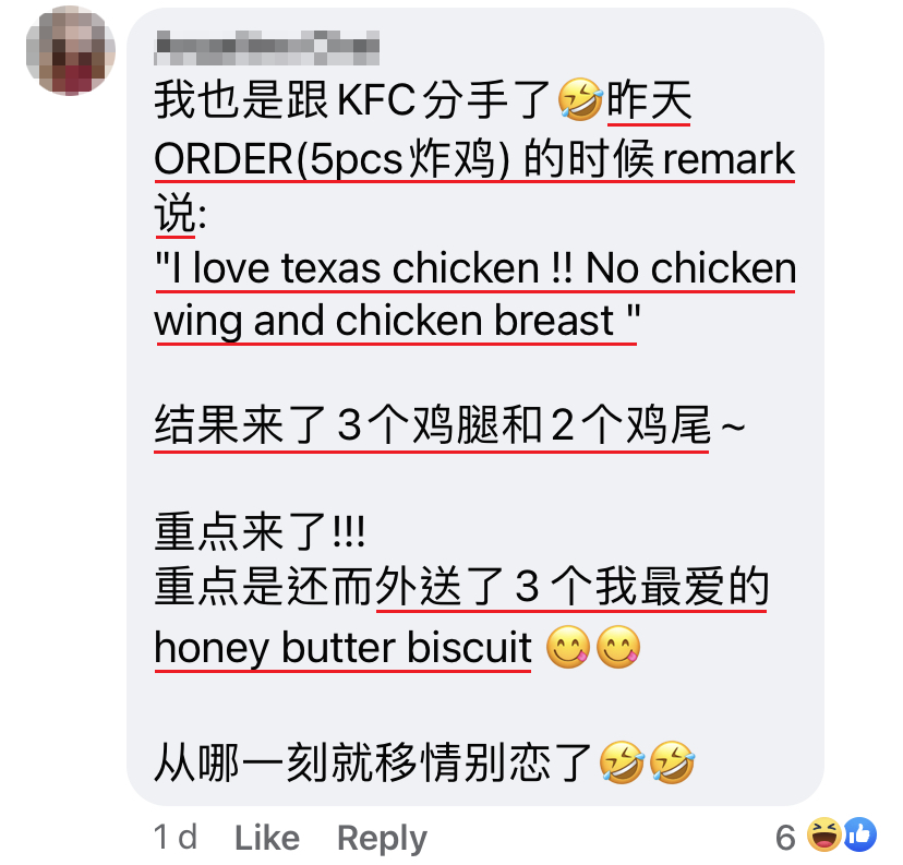 备注「Tolonglah我要鸡二度」收到的竟全是鸡胸肉!大马网友:我觉得KFC是故意的!