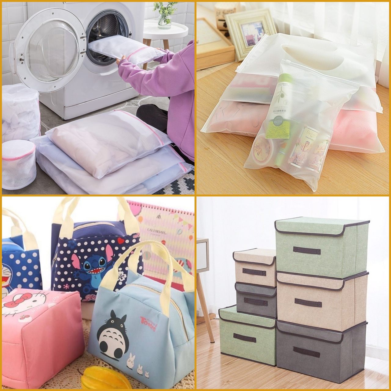 虽然收纳商品不多,较多于售卖家居超好用居家用品,洗衣机过滤网袋、透明收纳自封袋、便当保温手提包等等!都是平日常用的好物!