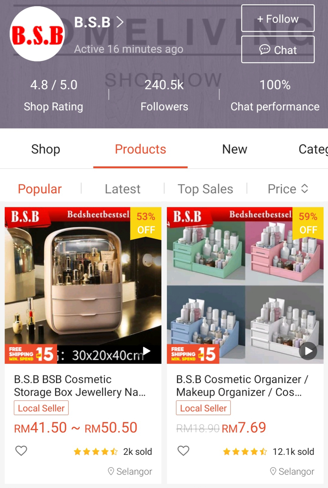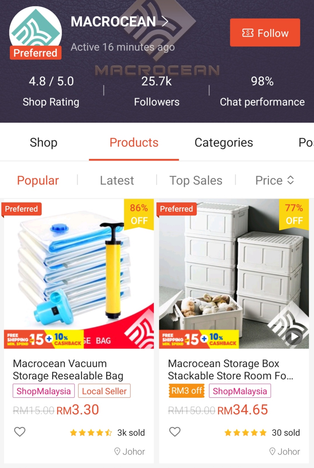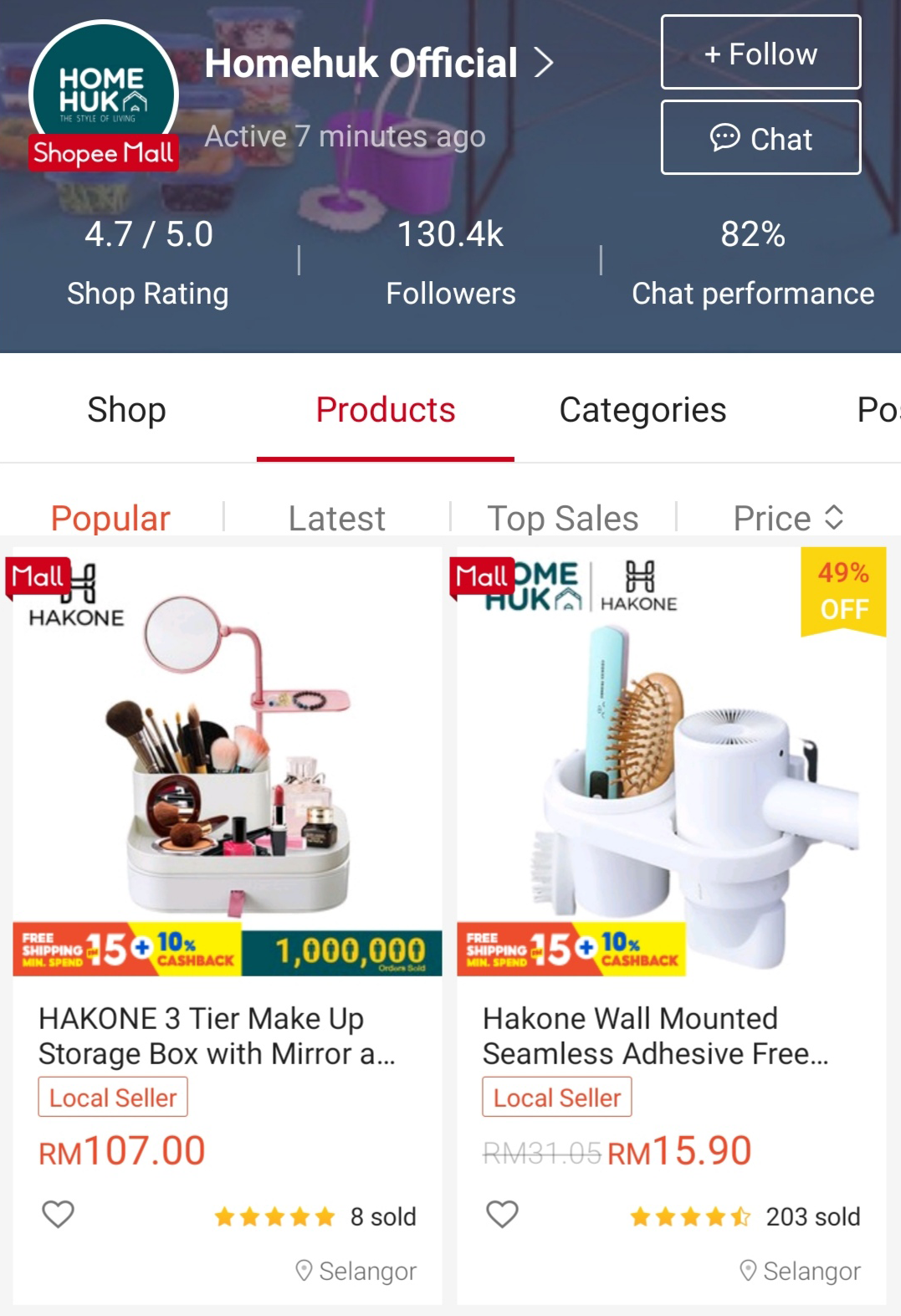 如果你有在Shopee 寻找一些收纳,想必一定看过这家店铺!光凭Followers 已经158K!此外,他家售卖的商品几乎都卖出1K以上!