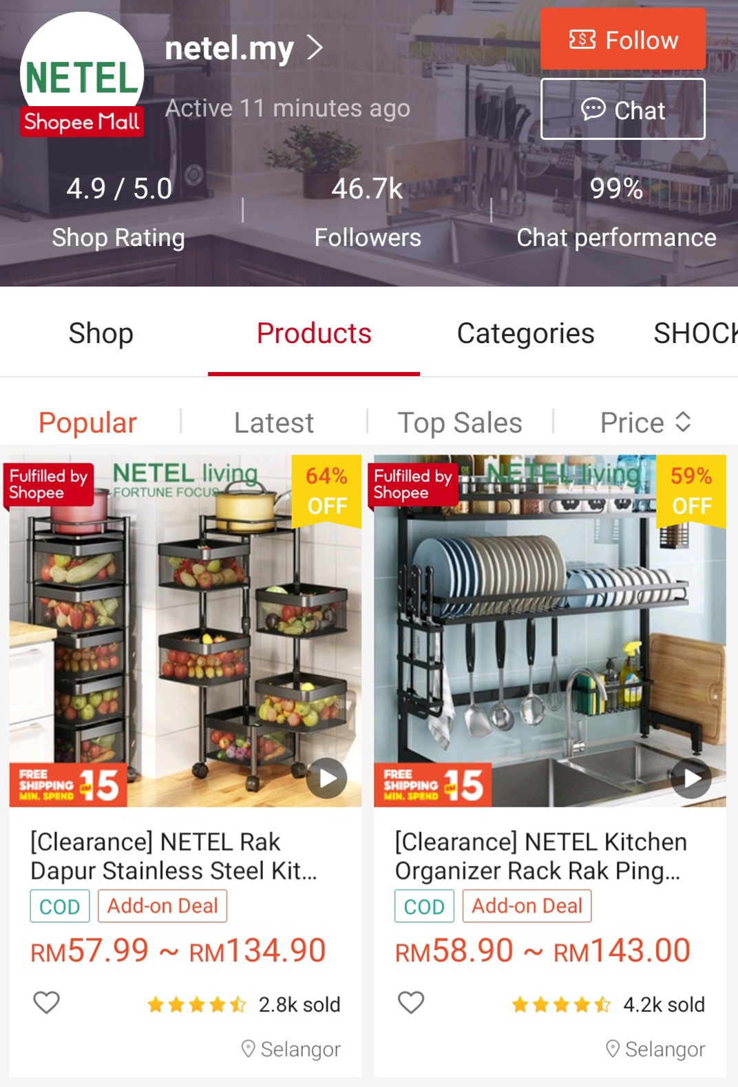 常在Shopee 购物,肯定知道netel 店铺售卖都是置物架!不管是厨房置物架或储藏室的都有,在促销日是会推出折扣券给大家领取哦!