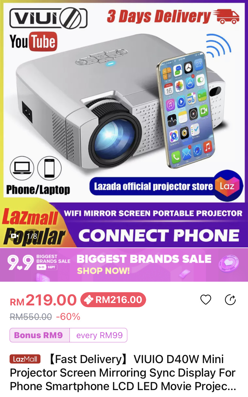 不用RM300就能买到一台性价比高、画质清晰又多功能的投影仪,真是太值得了啦!